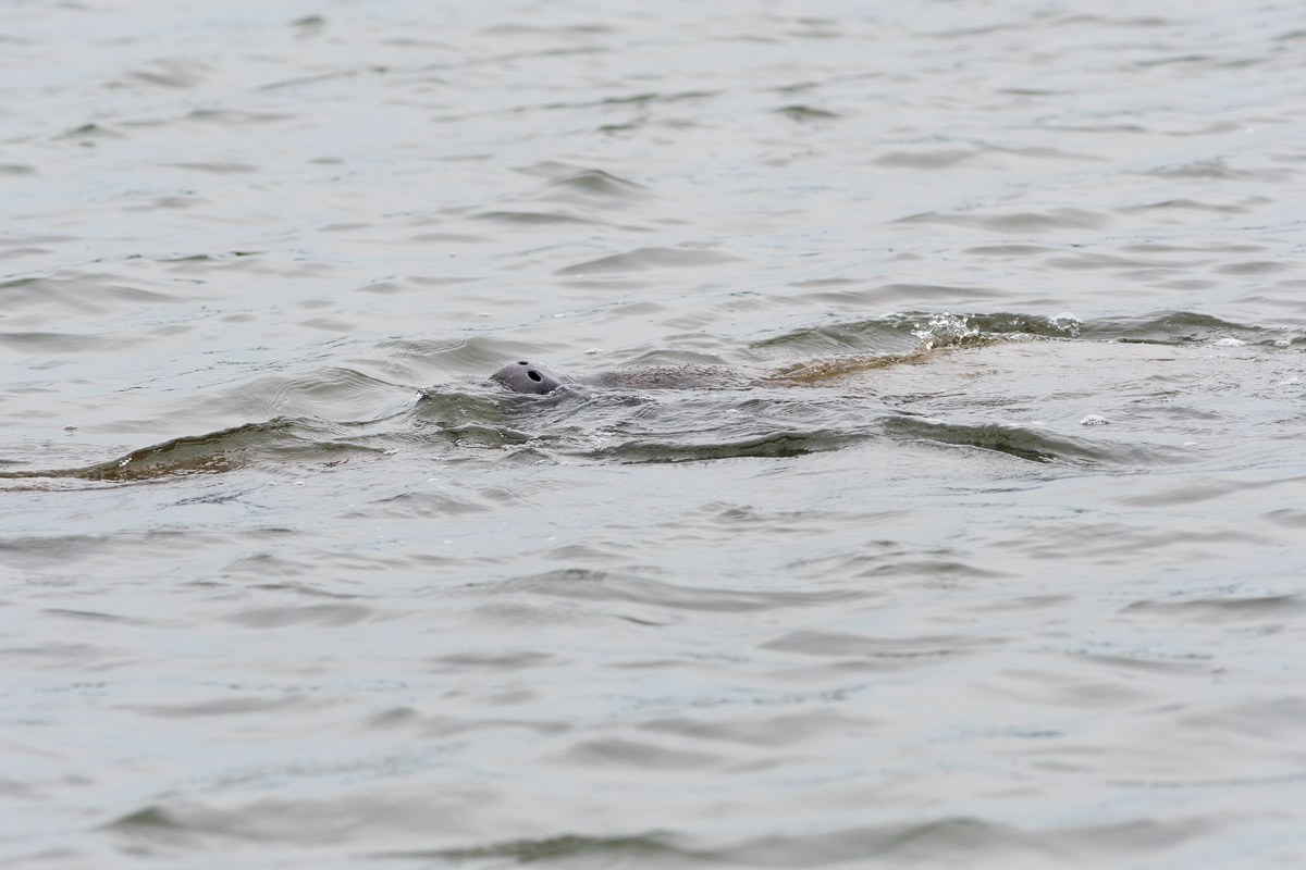 Die Nase einer Seekuh im Wasser.