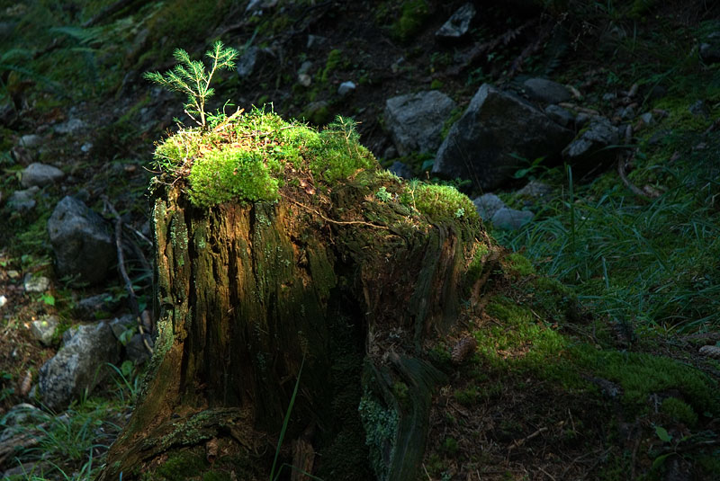 Tannennachwuchs auf Baumstrunk
